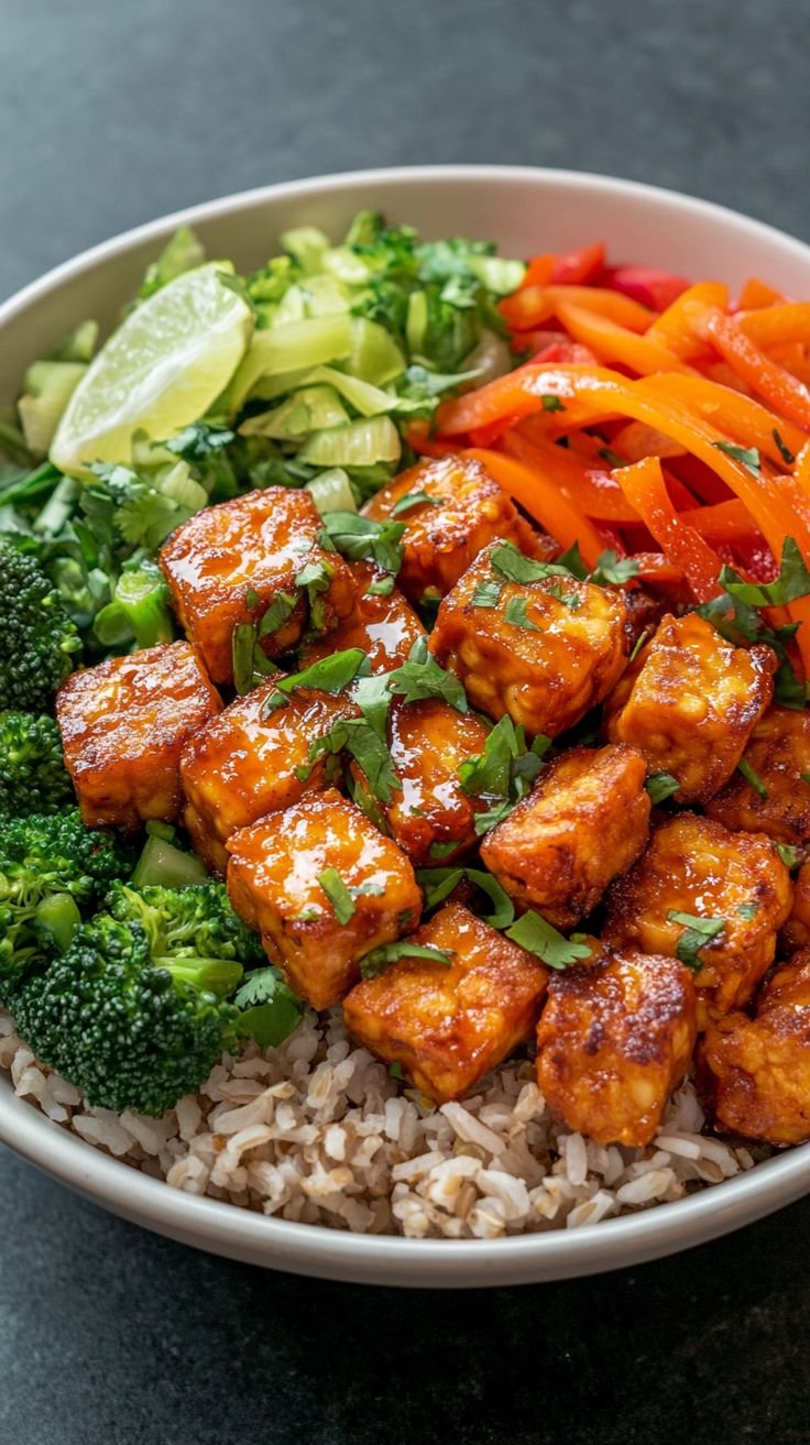 Golden-crispy tempeh tossed in a glossy sweet chilli–soy glaze, paired with vibrant sauteed vegetables. This dish is lightly sweet, savory, and comforting — perfect for weeknight dinners, meal prep, or a healthy bowl-style meal.