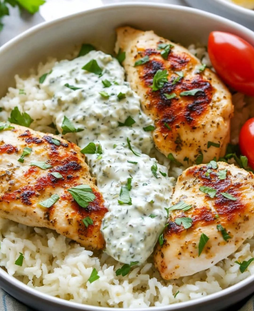 This Dump-and-Bake Chicken Tzatziki with Rice is a hassle-free, Mediterranean-inspired meal that requires no stovetop cooking! Simply mix everything in one baking dish and let the oven do the work. Juicy, marinated chicken cooks alongside fluffy, seasoned rice, absorbing all the flavors of garlic, lemon, and Greek herbs. Finished with a cool and creamy tzatziki sauce, this dish is perfect for a busy weeknight dinner.