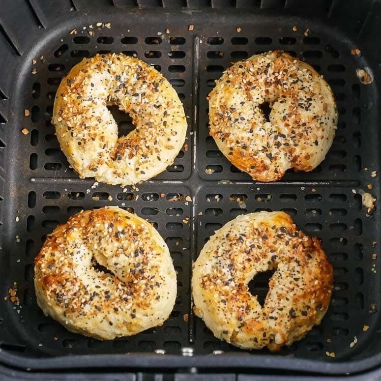 ⭐Remove the bagels from the air fryer basket and place the remaining bagels to cook. Repeat the process until all the bagels are air fried.