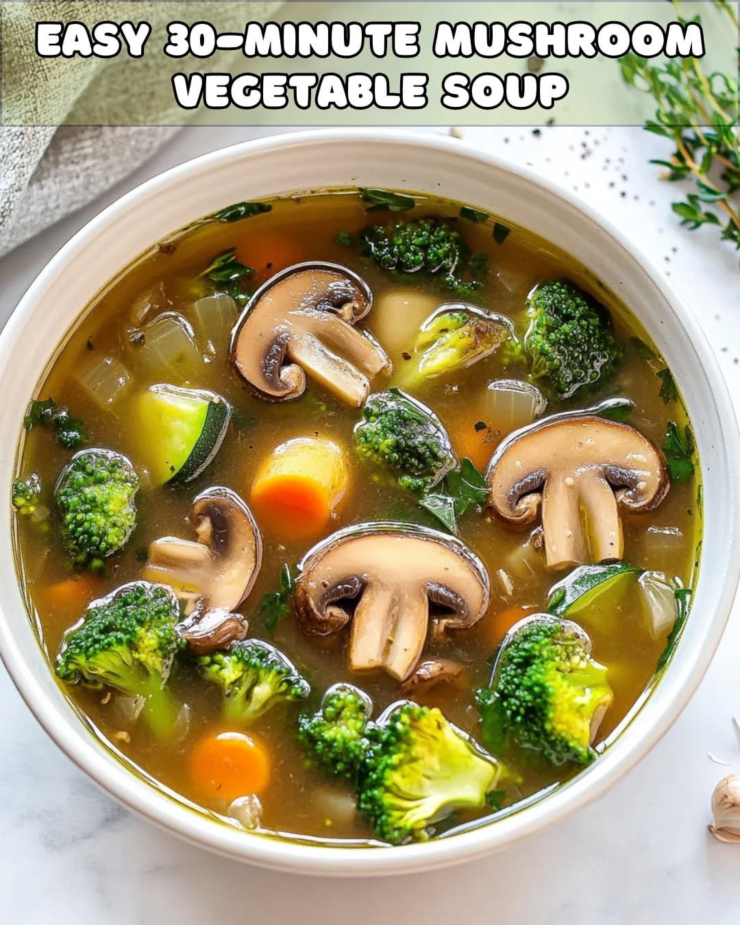 This Easy 30-Minute Mushroom Vegetable Soup is the ideal choice when you’re looking for a filling, healthy dinner that comes together fast. This rich but light soup is full of earthy mushrooms and a variety of fresh veggies, making it a great option for a nutritious lunch or midweek supper. A pleasant and nutritious depth of taste is created by the umami punch of the soy sauce and mushrooms combined with the thick vegetable broth and fragrant herbs. Let’s get started with this simple dish that will quickly warm you up!