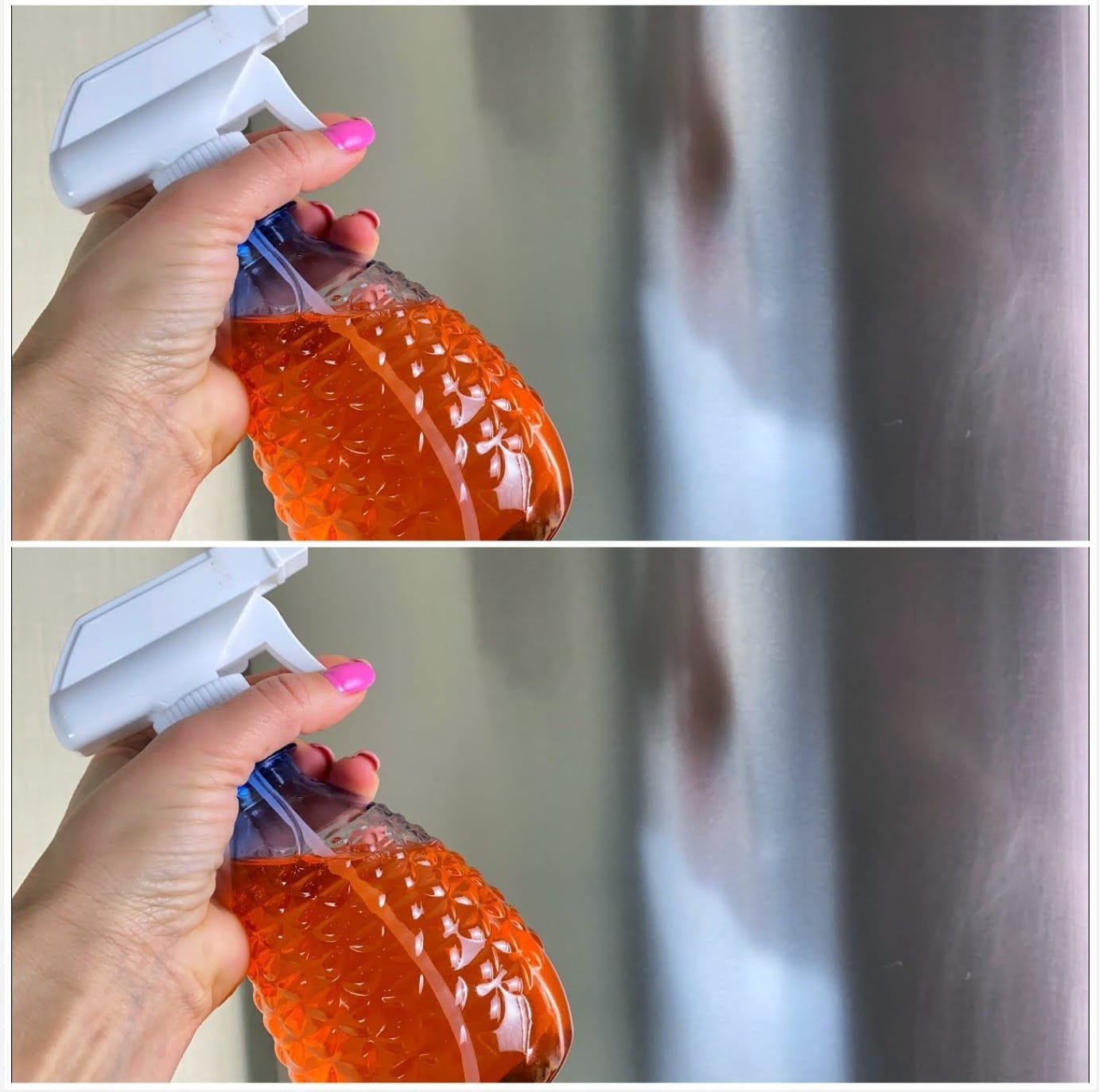 2. Generously mist the solution onto the stainless steel surface that need cleaning.
