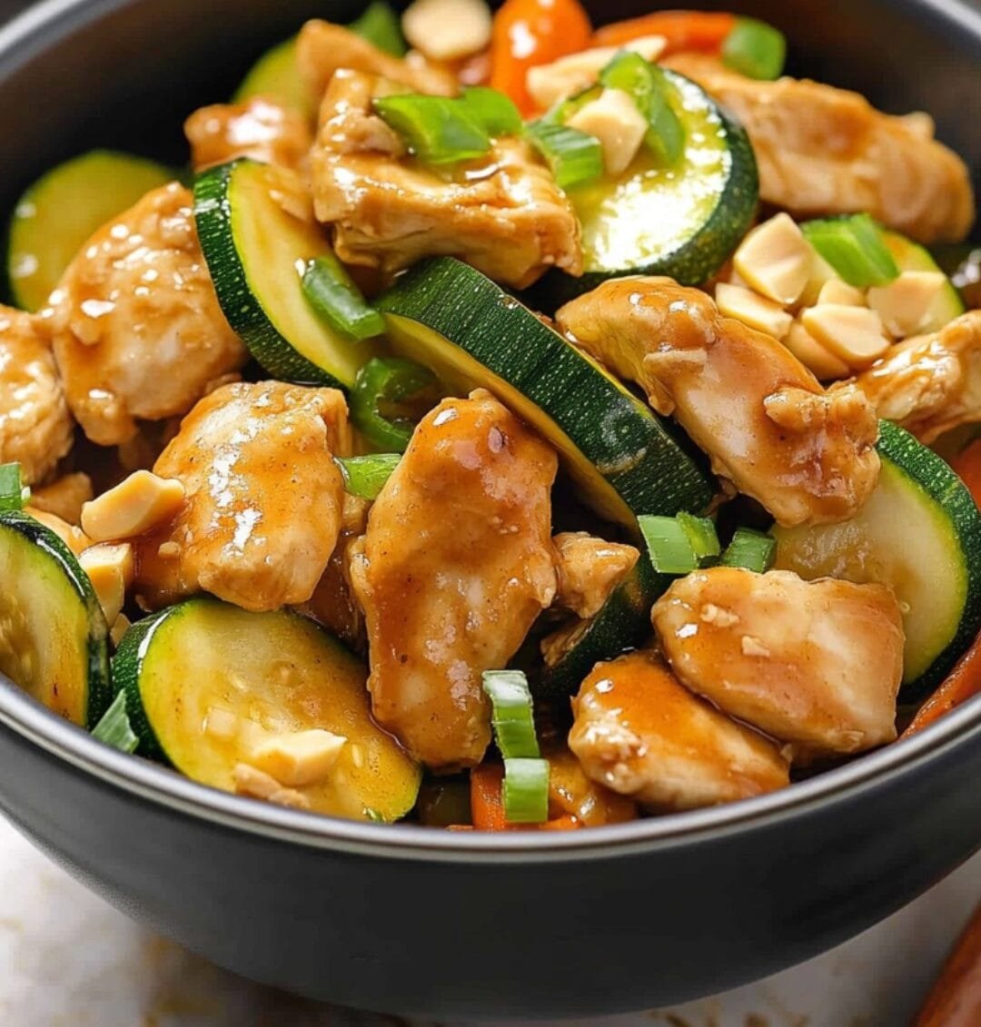 This simple stir-fried chicken and zucchini is a healthy, fast dinner that’s ideal for weeknights. It’s full of taste and texture thanks to the delicate chicken, fresh zucchini, and carrots. Roasted peanuts provide a delightful crunch, and a simple marinade made with soy sauce keeps everything flavorful and savory. This recipe is a go-to when you’re looking for a quick and nutritious supper since it goes nicely with rice, noodles, or even a simple salad!