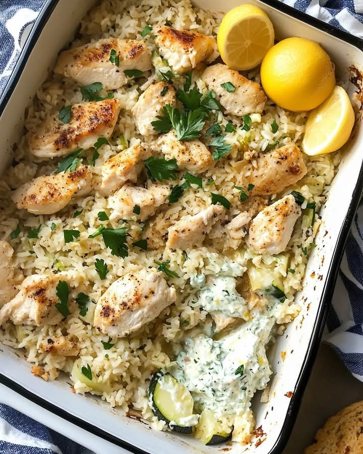 This easy Chicken Tzatziki Rice Bake combines the creamy, garlicky goodness of tzatziki sauce with tender chicken, seasoned rice, and vegetables — all baked in one dish for a delicious Mediterranean-inspired dinner. It’s perfect for busy weeknights and makes excellent leftovers.