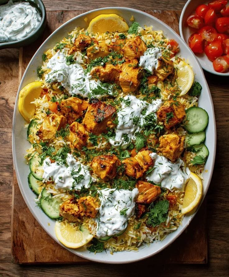 This one-pan Mediterranean-inspired meal features tender, juicy baked chicken cooked alongside fluffy herbed rice, all finished with a cool and creamy tzatziki sauce. It’s the ultimate no-fuss comfort dish — just mix, bake, and enjoy!