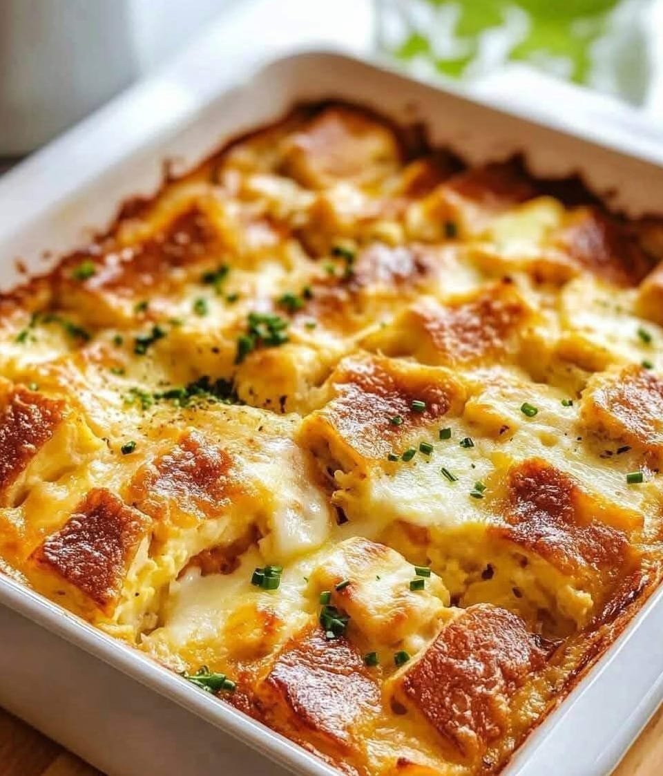11. Drizzle hollandaise sauce over the warm casserole. Garnish with chives or green onions. Serve immediately and enjoy!