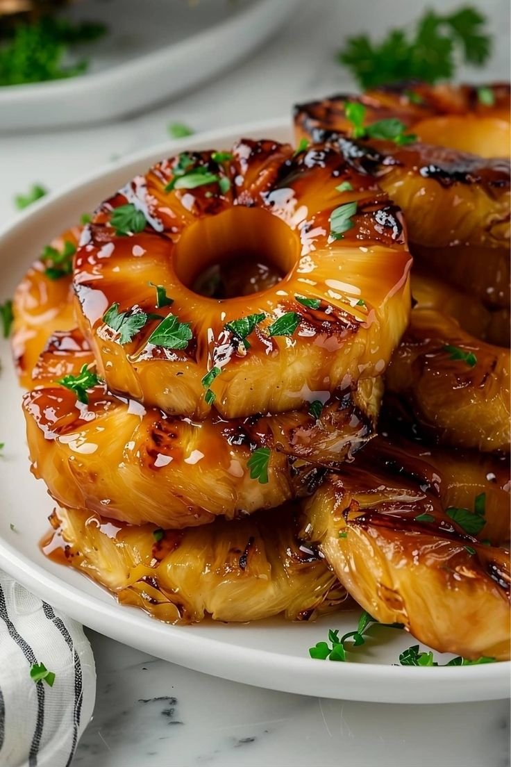 Juicy pineapple slices grilled until lightly charred, finished with a touch of caramelized brown sugar and warm spices.It’s sweet without being heavy, pairs beautifully with yogurt or ice cream, and feels festive yet effortless.