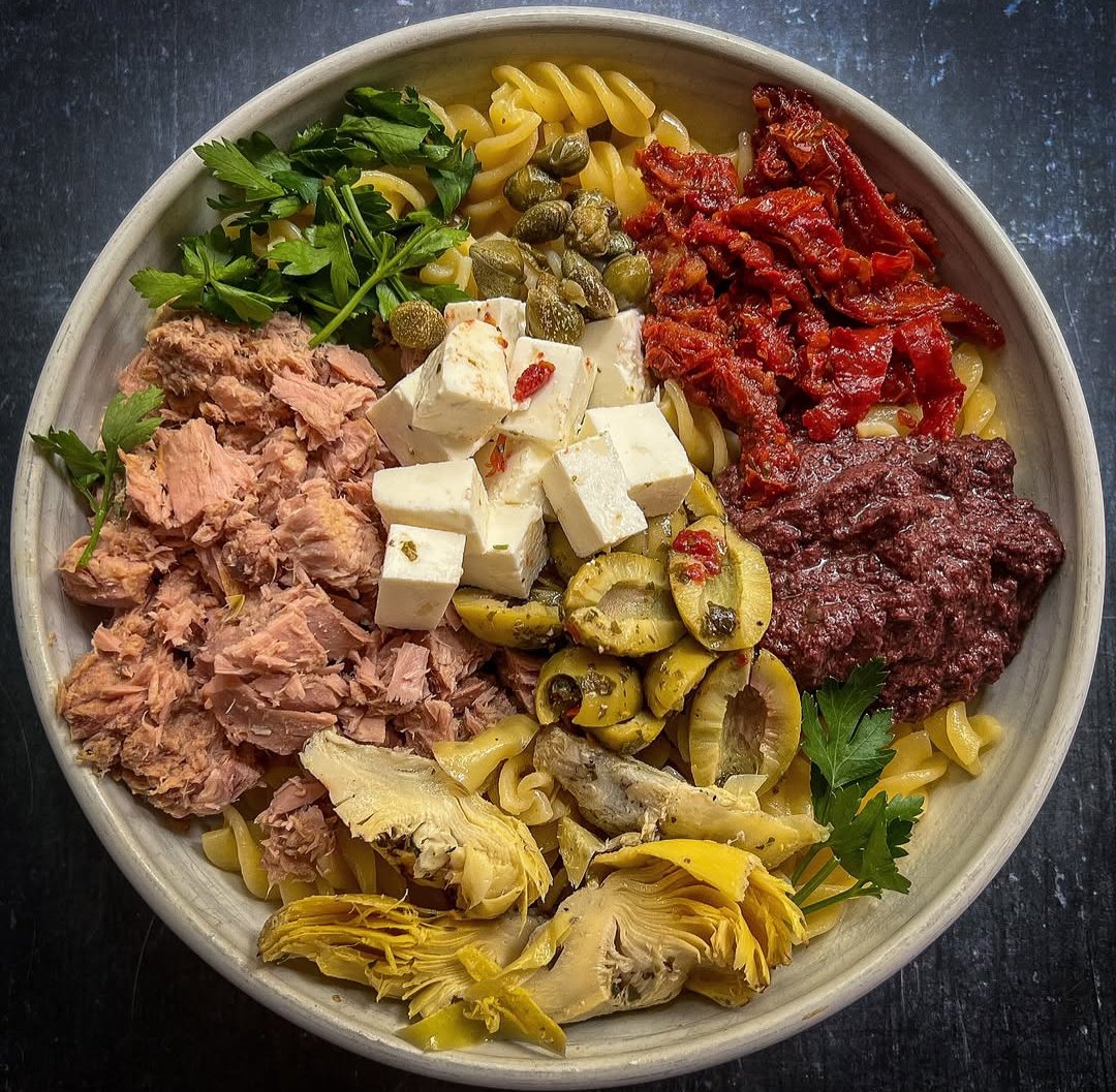 Flaky tuna tossed with al dente pasta, crisp veggies, olives, and a bright lemon-olive oil dressing. Light, flavorful, and very Mediterranean.