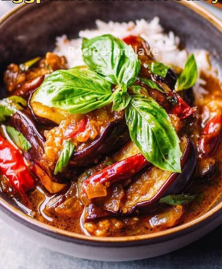 Eggplant and Basil Curry is a flavorful Thai-inspired dish featuring tender eggplant, aromatic Thai basil, and a rich coconut curry sauce. This vegetarian curry is vibrant, comforting, and perfect with steamed rice or noodles.