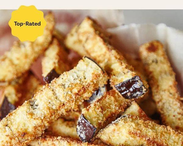 - Griddle. Remove the eggplant fries from the bag, gently shaking off excess crumbs, and place in a single layer on the prepared baking sheet. Proceed to spray with an additional layer of cooking spray. For a total of around 15 minutes, roast the fries, turning them over every five minutes, until they are golden brown and crisp.