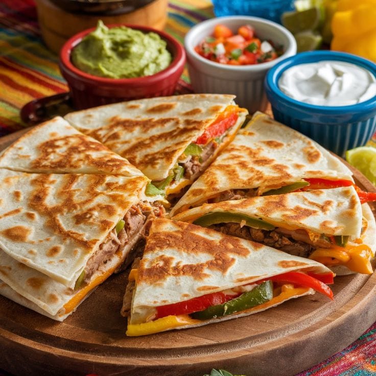 Cook each quesadilla 2–3 minutes per side until golden brown and cheese is melted.