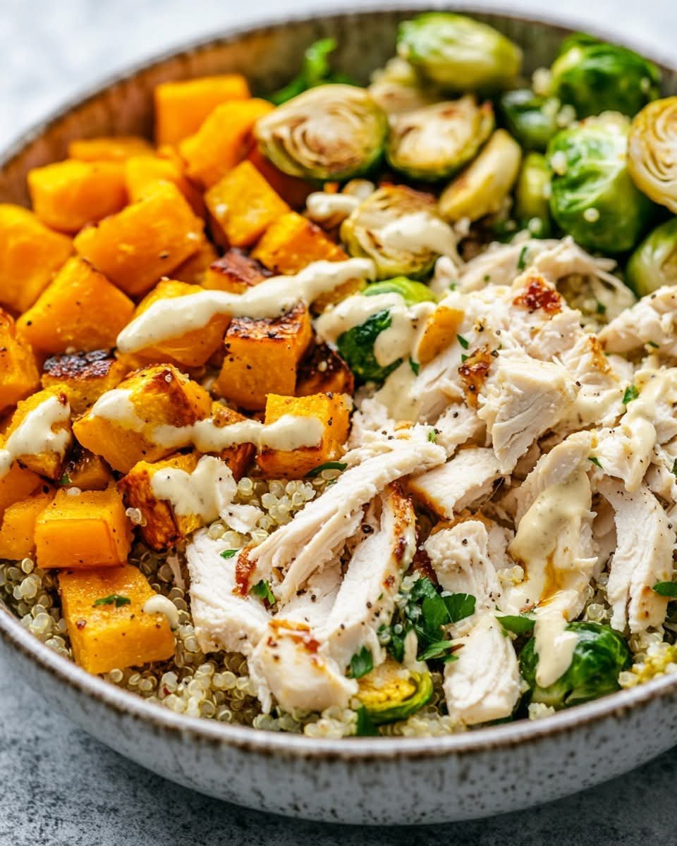 Enjoy your Fall Quinoa Salad with Roasted Squash & Brussels Sprouts—a cozy, wholesome dish bursting with autumn flavors!