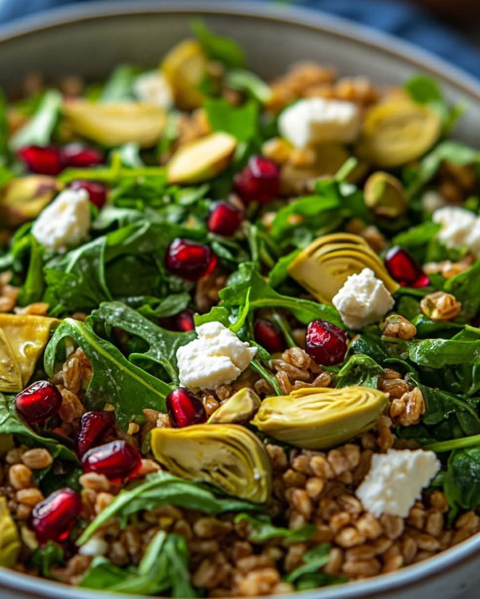This farro and arugula salad is a hearty, nutritious dish packed with whole grains, fresh greens, and a zesty dressing. Farro provides a chewy texture and nutty flavor, while arugula adds a peppery bite. Tossed with cherry tomatoes, feta cheese, and a tangy lemon dressing, this salad is perfect as a light meal or a side dish.