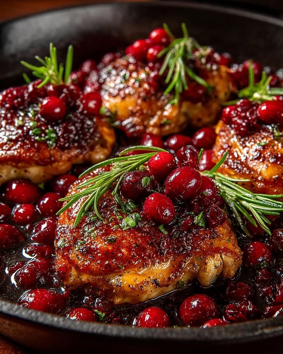 Festive Cranberry & Rosemary Skillet Chicken with Holiday Charm