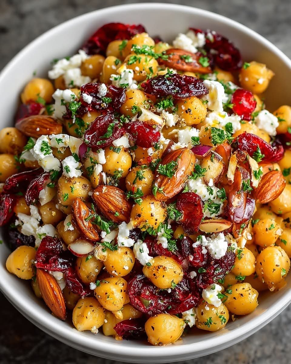 Festive Lemon-Tossed Chickpea Salad with Cranberries, Almonds & Feta