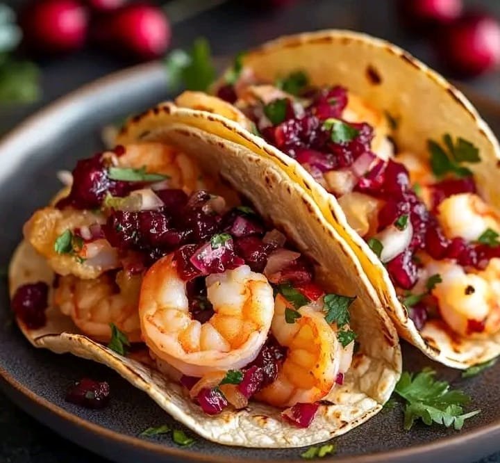 Shrimp Tacos with Cranberry Salsa, perfect for holiday gatherings or any special occasion. This dish combines the freshness of seafood with the tangy sweetness of cranberries for a unique and flavorful experience.