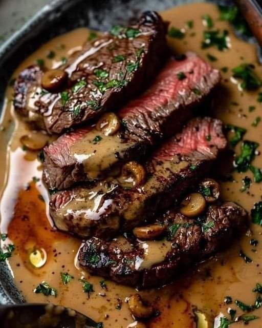 Flambeed Brandy Steak with Mushroom Sauce is an elegant and flavorful dish that features juicy, pan-seared steaks flambeed with brandy for a rich, smoky taste, paired with a savory mushroom sauce. This dish is perfect for special occasions or a romantic dinner at home. The combination of tender steak and creamy mushroom sauce creates a luxurious dining experience that is sure to impress.