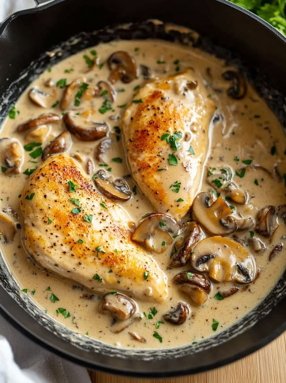 Chicken Diane is a classic French bistro dish known for its rich, velvety sauce and elegant flavor. Tender pan-seared chicken breasts are paired with golden sautéed mushrooms and finished in a luxurious Dijon-mustard cream sauce with garlic, shallots, and fresh herbs. It’s indulgent yet simple—perfect for a cozy dinner or an impressive weeknight meal.
