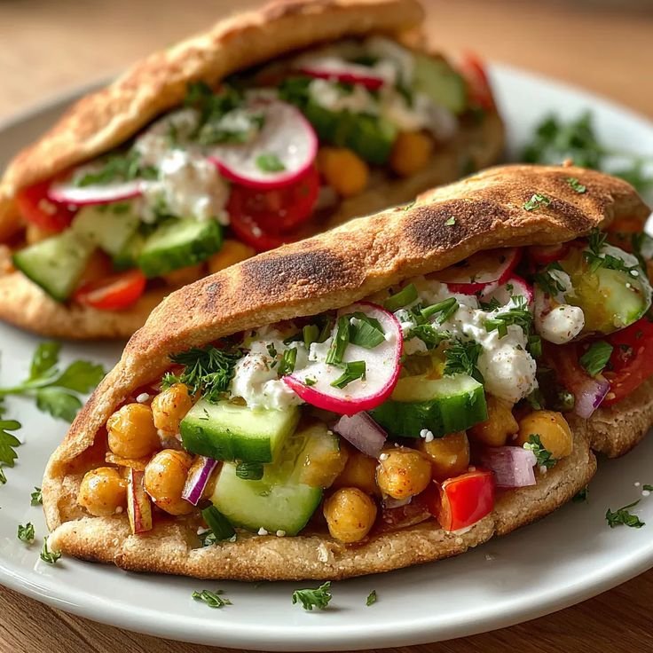 These Fresh Cucumber & Chickpea Stuffed Pita Pockets are light, refreshing, and full of Mediterranean flavor. Creamy Chickpeas paired with crisp Cucumber and herbs create a satisfying plant-based filling tucked into soft pita bread.Perfect for quick lunches, healthy snacks, or meat-free meals.