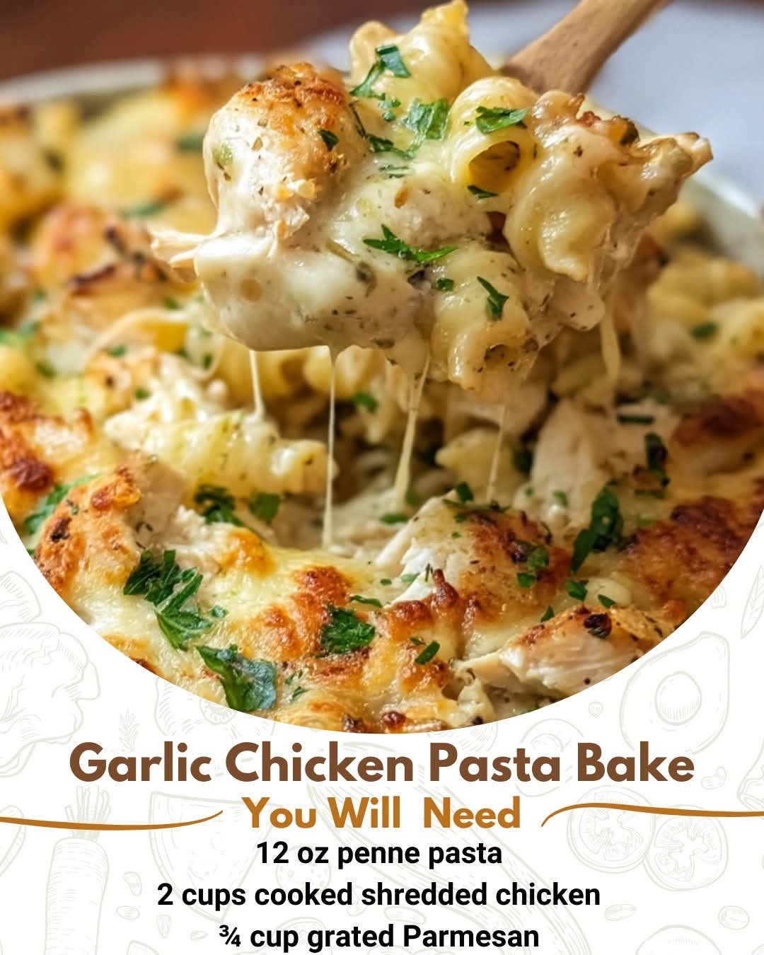 Tender chunks of garlic-infused chicken tossed with pasta, a creamy white sauce, and melted cheese, then baked to golden, bubbly perfection. It’s a satisfying, oven-baked classic ideal for weeknights or casual gatherings.