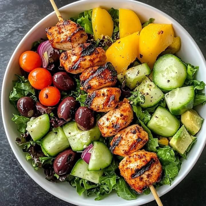 This Garlic Chicken Skewer Salad is a perfect combination of juicy, garlicky grilled chicken skewers paired with a fresh, crunchy, and colorful salad. It’s packed with protein, fiber, and essential nutrients, making it a wholesome and satisfying meal. The marinated chicken is grilled to perfection, giving it a smoky and slightly charred flavor that complements the crisp vegetables and creamy dressing.