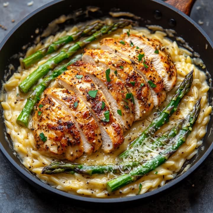 Garlic Herb Chicken with Creamy Asparagus is a one-pan meal packed with protein, healthy fats, and green vegetables. This dish features juicy, pan-seared chicken breasts seasoned with a fragrant mix of garlic and herbs, simmered in a rich, creamy Parmesan sauce alongside tender-crisp asparagus. It’s a comforting yet fresh low-carb dinner perfect for any night of the week.