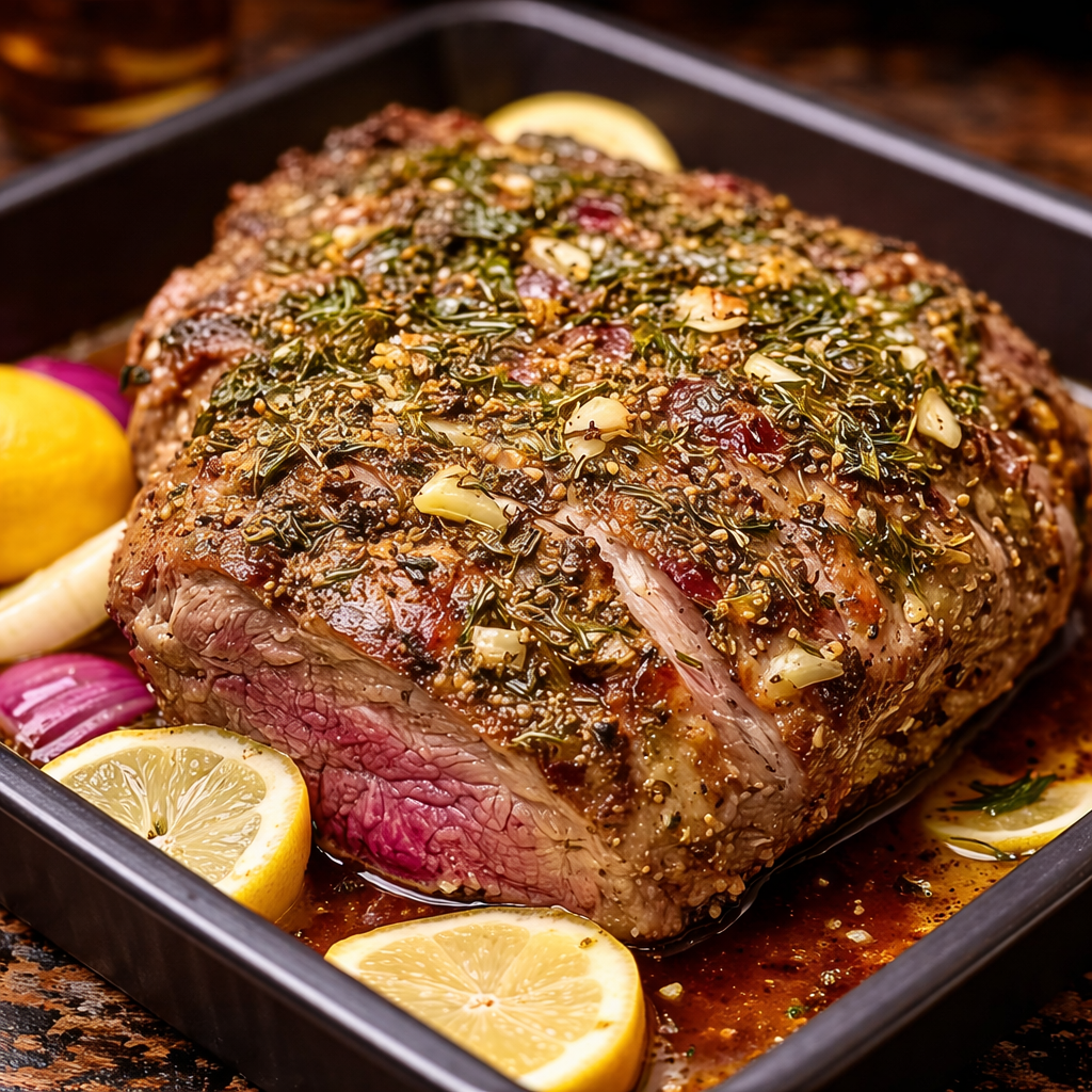 This Garlic Herb Roasted Lamb is a juicy, flavorful centerpiece dish featuring tender lamb coated in a rich blend of garlic, herbs, and spices. Roasted to perfection with lemon and onions, it delivers a crispy crust on the outside and melt-in-your-mouth tenderness inside—perfect for special dinners or gatherings.