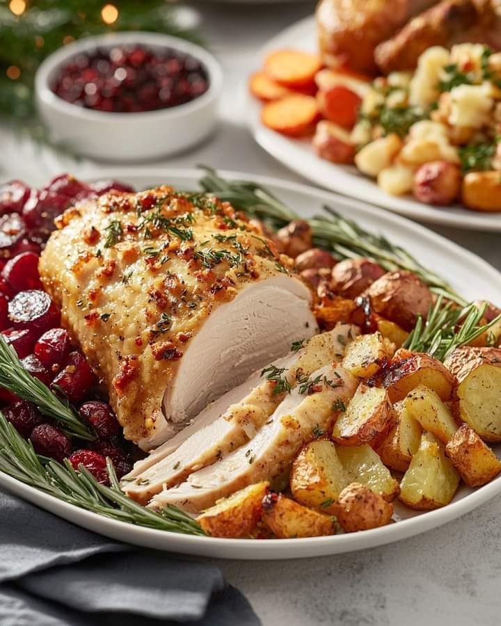 Garlic Herb Roasted Turkey Breast with Cranberries and Roasted Potatoes