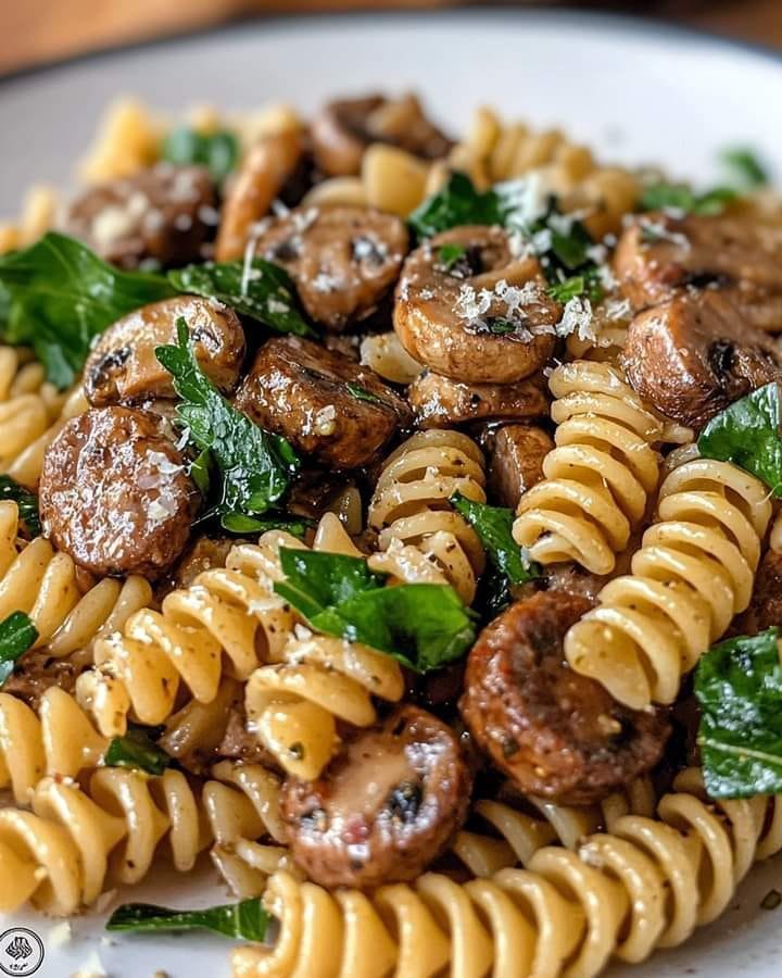 Indulge in a flavorful and satisfying Italian-inspired dish, combining the rich flavors of garlic, mushrooms, and spinach with the comfort of pasta. This recipe is perfect for a weeknight dinner or a special occasion.