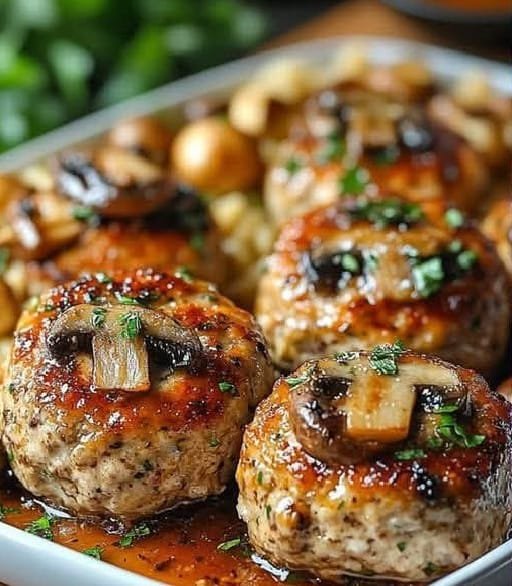 Garlic Parmesan Chicken Meatloaves with Mushrooms