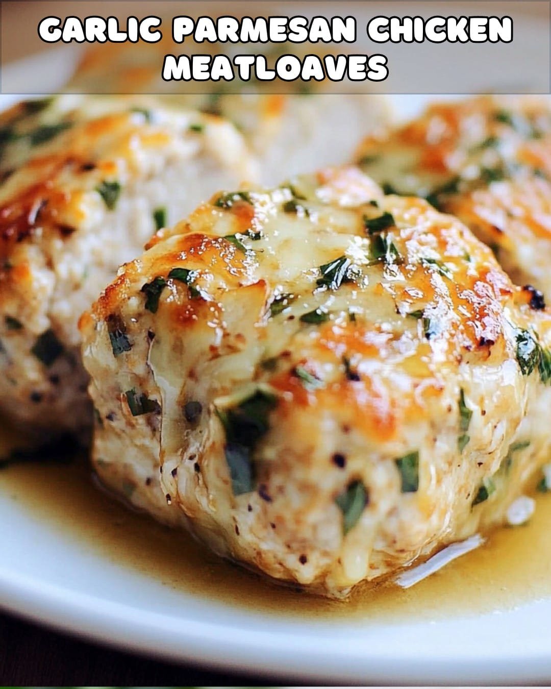 Description: Tender and flavorful chicken meatloaves infused with the rich flavors of garlic, parmesan cheese, and Italian seasonings, baked to perfection and topped with a crispy parmesan crust.