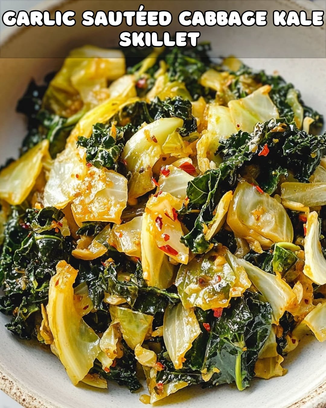This healthful and adaptable side dish, Garlic Sautéed Cabbage and Kale Skillet, goes great with a wide range of main dishes. This recipe is tasty and gratifying because of the mix of delicate cabbage and kale, accentuated with savory garlic, optional red pepper flakes, and lemon juice or vinegar. Savor this tasty recipe’s nutritious advantages and ease of preparation!