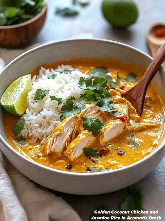 Golden Coconut Chicken and Jasmine Rice in Aromatic Broth