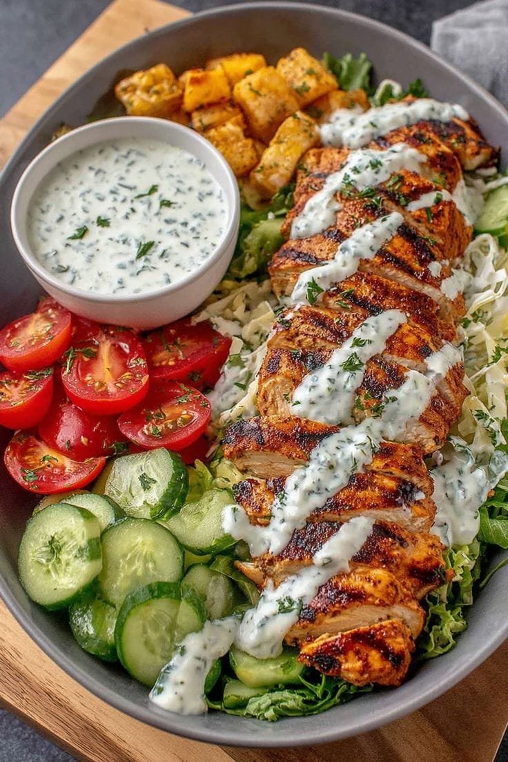 This Greek Chicken and Herb Plate is a refreshing, protein-packed Mediterranean meal featuring grilled lemon-herb chicken, garlic yogurt sauce, and a side of vibrant vegetables with optional rice or pita. Every bite is layered with flavor — fresh herbs, olive oil, and tangy lemon come together to create a balanced and nourishing meal.