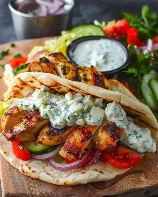 Greek Chicken Gyros with Tzatziki Sauce and Greek Salad