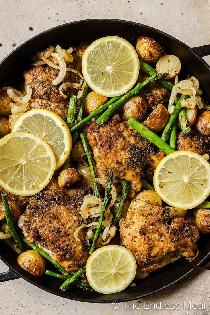 Chicken Thighs: stay juicier during roasting than breasts, but you can use any cuts.