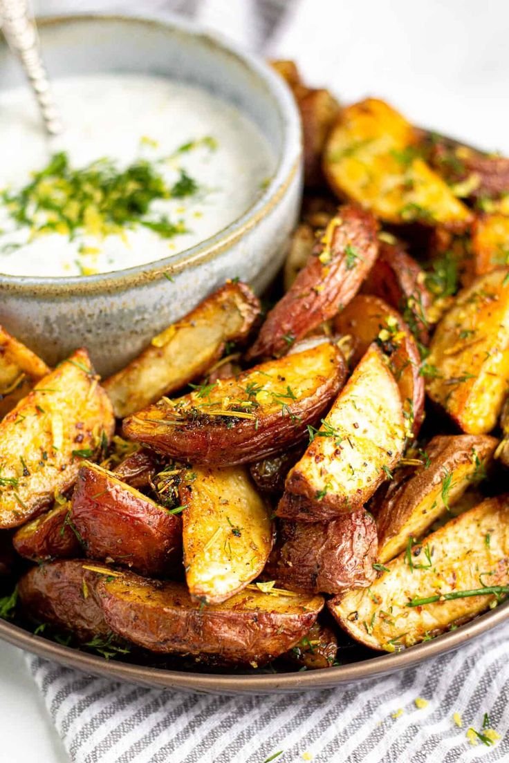 Greek Lemon Potatoes are crispy on the outside, soft on the inside, and infused with olive oil, garlic, oregano, and fresh lemon. Paired with cool, creamy tzatziki sauce, this dish is a perfect balance of warm and refreshing flavors. It’s a classic Greek side dish often served with grilled meats, fish, or as part of a mezze platter.