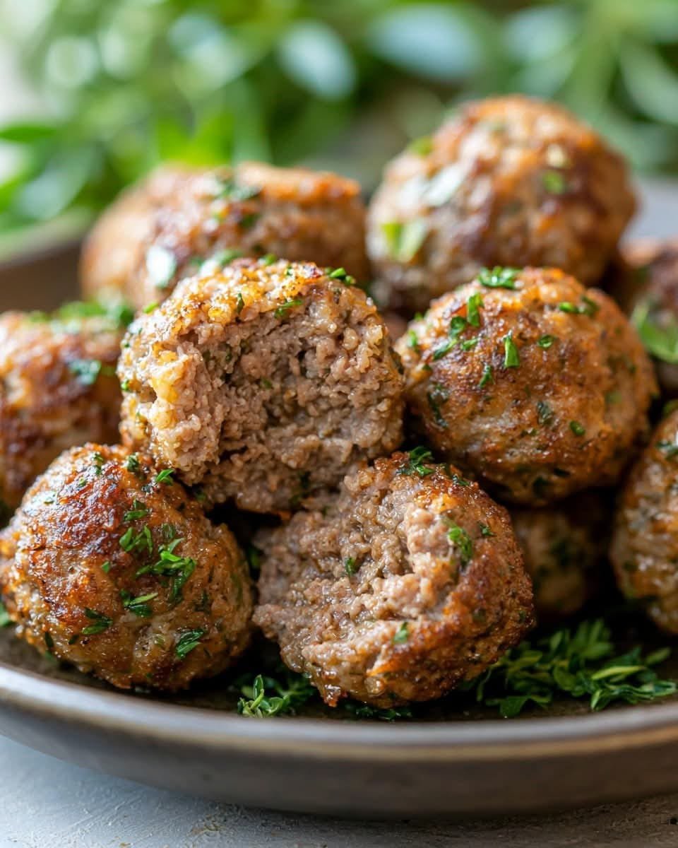 Greek Meatballs, or Keftedes, are juicy, herby meatballs bursting with flavor from fresh parsley, mint, and oregano. Traditionally pan-fried to get a crispy exterior while staying tender and moist inside, they’re served with a side of tzatziki, lemon wedges, or wrapped in pita. Keftedes are perfect as appetizers, in mezze platters, or for a satisfying weeknight dinner.