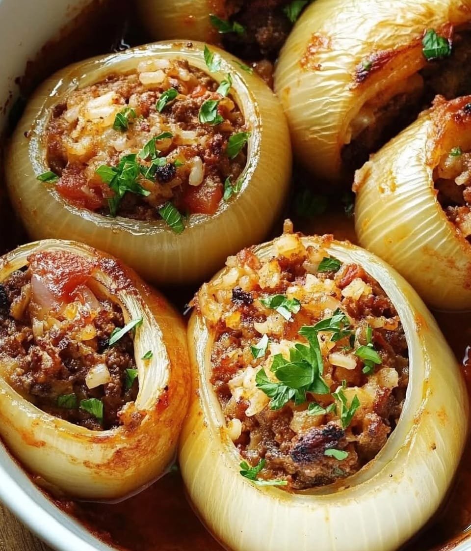 Greek stuffed onions, or Gemista Kremmydia, are a delicious and unique dish featuring tender onions filled with a flavorful mixture of ground meat, rice, herbs, and spices. This traditional dish is slow-cooked in a light tomato sauce, creating a comforting and aromatic meal. It’s perfect as a main course or a side dish and can be enjoyed warm or at room temperature.