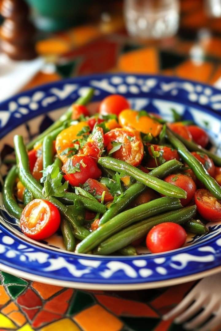 3. Combine Ingredients: In a large bowl, mix the green beans, cherry tomatoes, basil, and parsley. Drizzle the dressing over the top and toss gently.