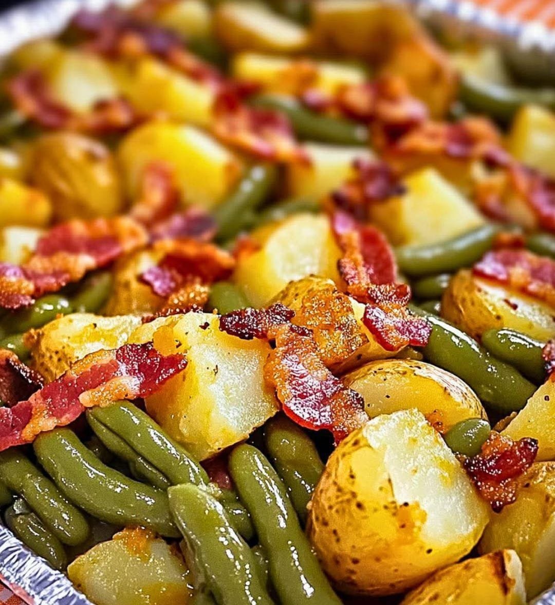 This rustic dish brings together tender green beans, soft potatoes, and crispy bacon, all seasoned with garlic, onion, and a touch of broth. It’s savory, satisfying, and pairs perfectly with roasted meats, grilled dishes, or even as a main on its own.