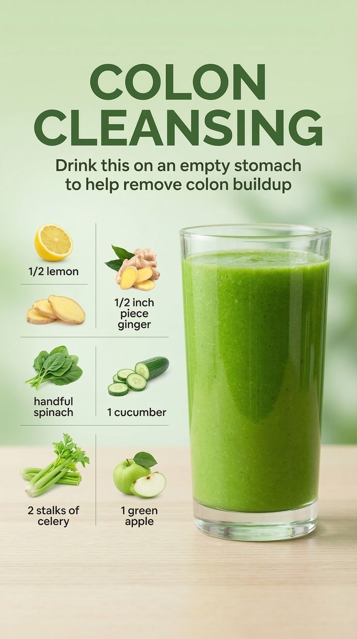 This drink combines green veggies, fresh herbs, citrus, and hydrating ingredients to support digestion, cleanse the colon, and boost metabolism. Inspired by Mediterranean wellness habits, it’s low-calorie, fiber-rich, and refreshing — perfect as a morning detox or anytime pick-me-up.