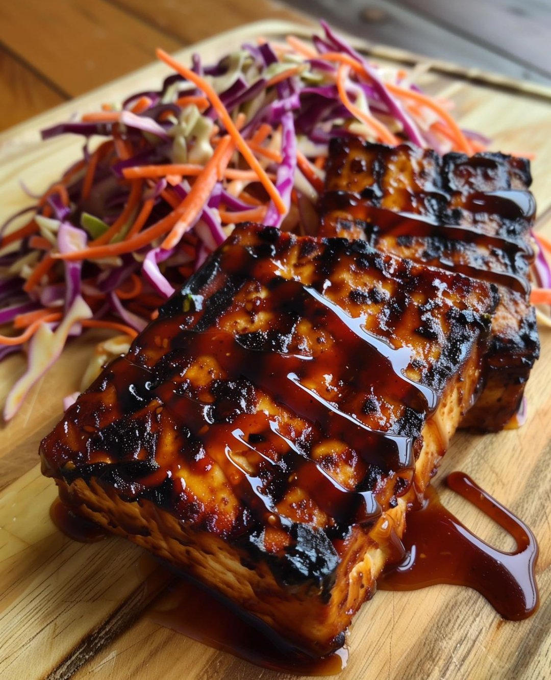 Thick tofu steaks marinated in a smoky BBQ sauce, then grilled until charred and caramelized. High-protein, hearty, and crowd-pleasing.