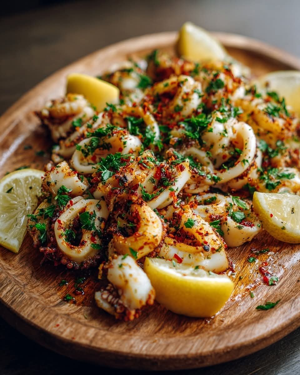 Transfer calamari to a platter, drizzle with lemon-chilli oil, and garnish with fresh parsley or extra lemon wedges.