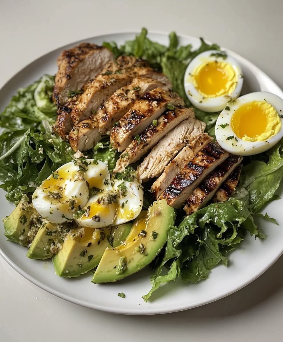 Here is your full detailed recipe with description, timing, and Q&A section for a Grilled Chicken Caesar Bowl with Avocado and Egg — clear, flavorful, and easy to follow!