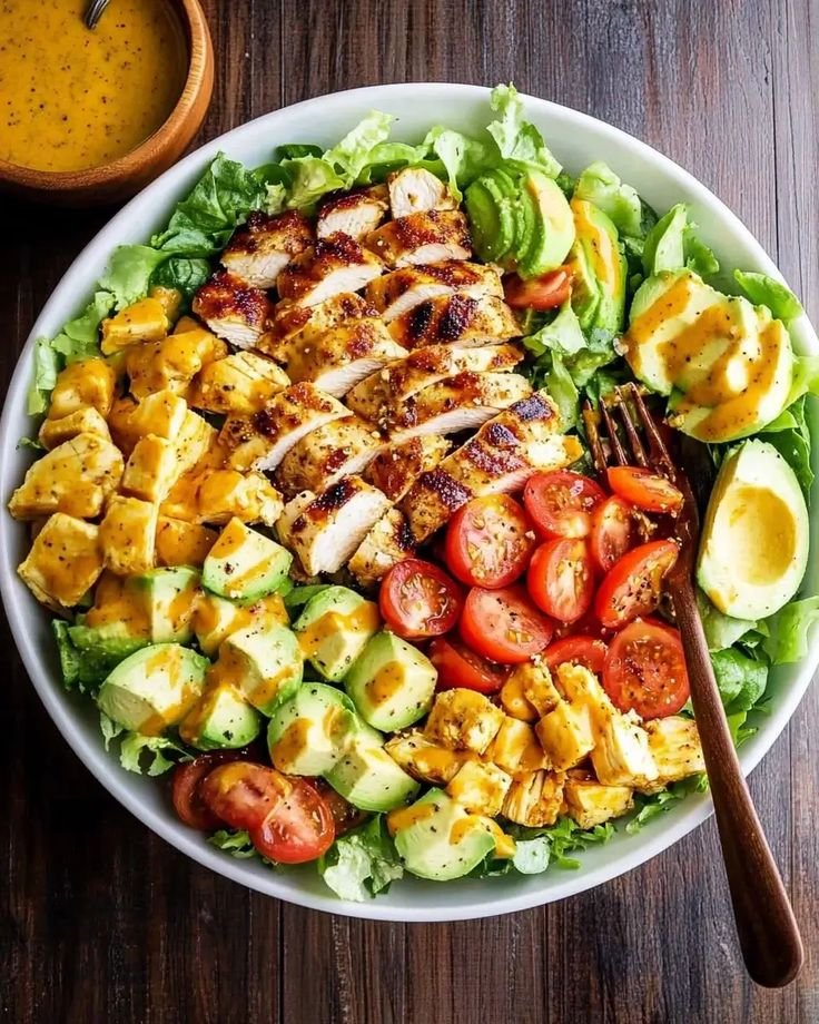 This grilled chicken Cobb salad is a wholesome, high-protein twist on the classic. Juicy grilled chicken, creamy avocado, crisp greens, eggs, and tomatoes are brought together with a tangy honey Dijon dressing—balanced, satisfying, and perfect for lunch or dinner.