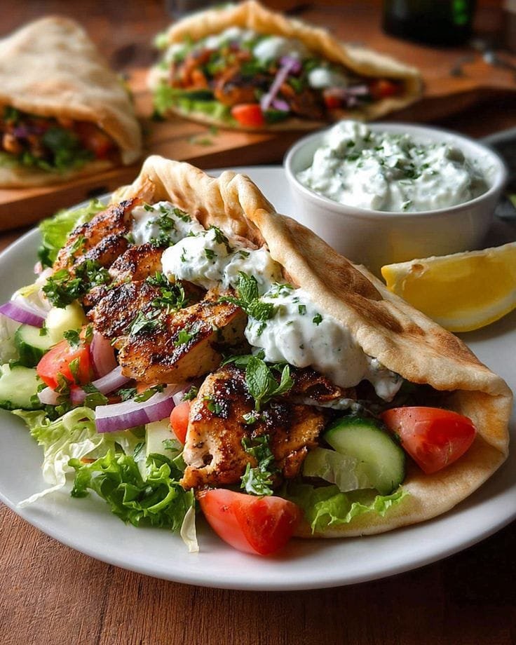 Juicy, marinated grilled chicken wrapped in soft pita bread with crisp fresh vegetables and creamy tzatziki sauce — this Greek-style gyro is light, healthy, and bursting with vibrant Mediterranean flavors. Perfect for lunch, dinner, or a meal-prep favorite you’ll crave all week!
