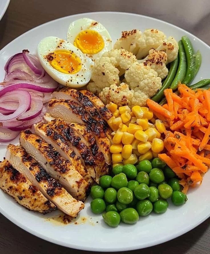 This protein bowl is balanced and nourishing—lean grilled chicken for protein, fiber-rich veggies, and healthy fats from olive oil and avocado. Great for lunch, dinner, or meal prep.