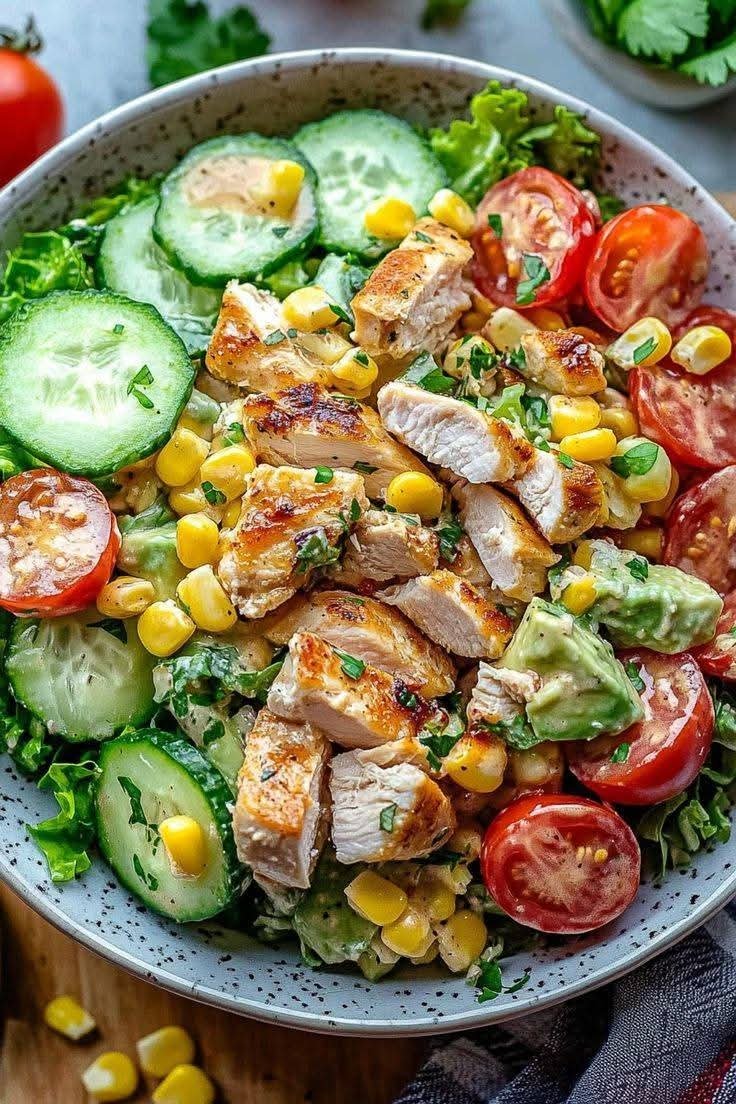 This grilled chicken salad is a fresh, flavorful, and protein-packed meal. Juicy marinated chicken breasts are grilled until perfectly charred, then sliced over a bed of crisp vegetables, mixed greens, and a bright lemon-herb dressing. Ideal for lunch, dinner, or meal prep—healthy but satisfying.