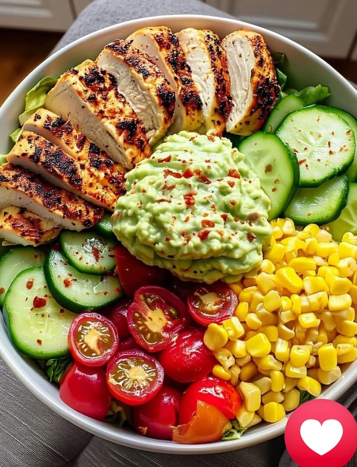 This Grilled Chicken Salad Bowl is a vibrant, protein-packed meal that balances smoky grilled chicken with creamy homemade guacamole, sweet corn, and crisp, colorful vegetables. It’s refreshing yet filling—perfect for a healthy lunch, light dinner, or meal prep. Every bite delivers texture, flavor, and nutrition without feeling heavy.