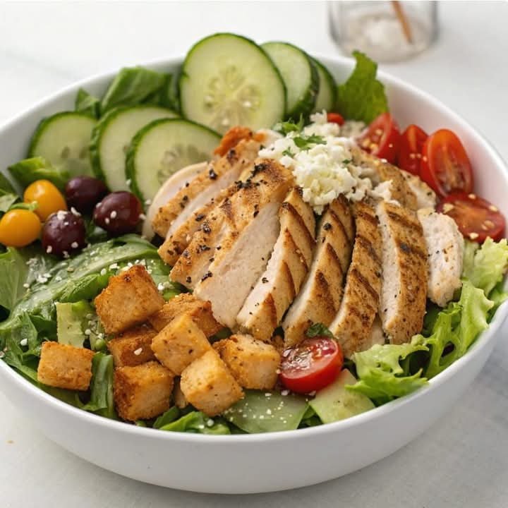 This Grilled Chicken Salad is a delicious, protein-packed meal that’s light, refreshing, and full of flavor. Juicy grilled chicken breast served over a bed of crisp greens with vibrant vegetables, finished with a tangy homemade vinaigrette. Perfect for lunch, dinner, or meal prep.